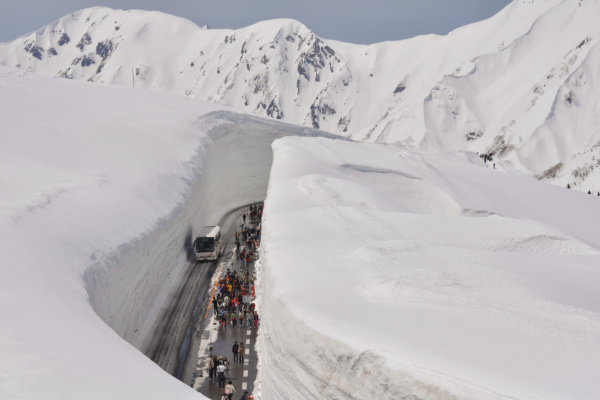 ひと冬かけて降り積もった雪の壁は迫力ある景観とともに水の王国と呼ばれる富山の大地を潤す源でもあります。標高0mの街中から3000mの立山連峰まで壮大な水のストーリーをたどり雪の大谷を目指します。