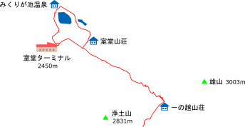 室堂ターミナル → みくりが池 → 一の越 → 浄土山手前 → 一の越 → 室堂ターミナル