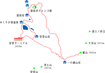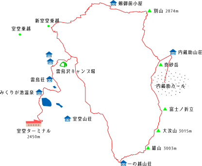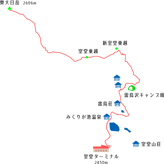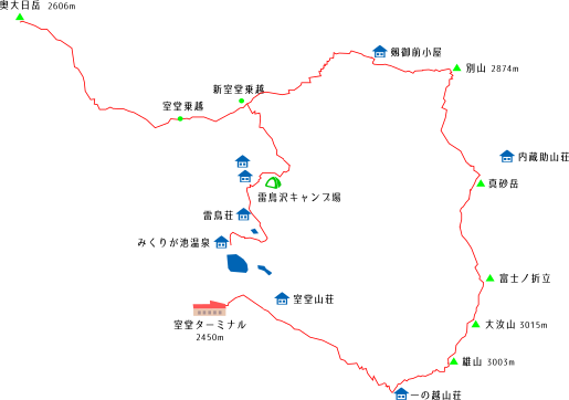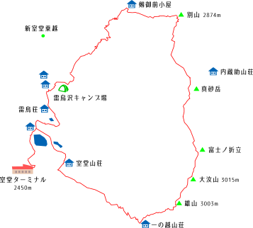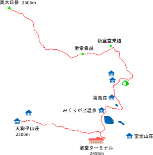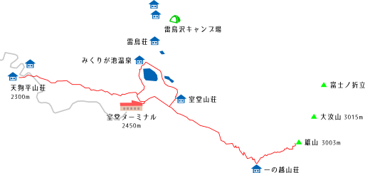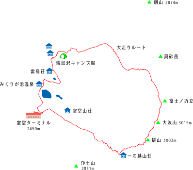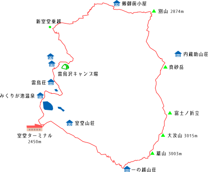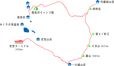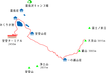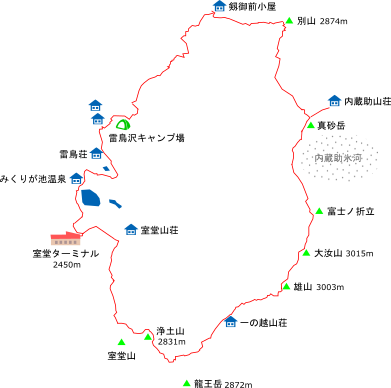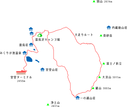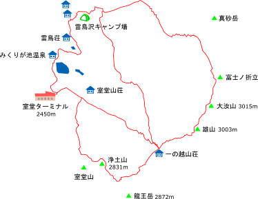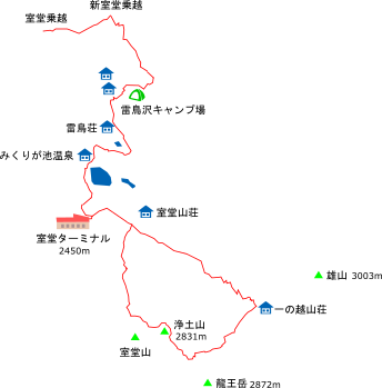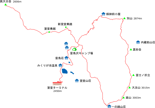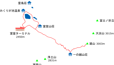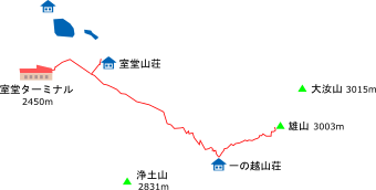 室堂山荘(合流) → 一の越 → 雄山 → 大汝山 → 雄山 → 一の越 → みくりが池 → 室堂ターミナル
