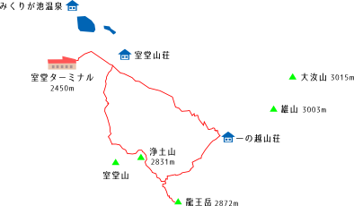 室堂ターミナル → 室堂山 → 浄土山 → 龍王岳 → 一の越 → 室堂ターミナル