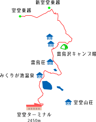 室堂ターミナル → みくりが池 → 雷鳥沢キャンプ場 → 母恋坂 → 室堂山荘 → 室堂ターミナル